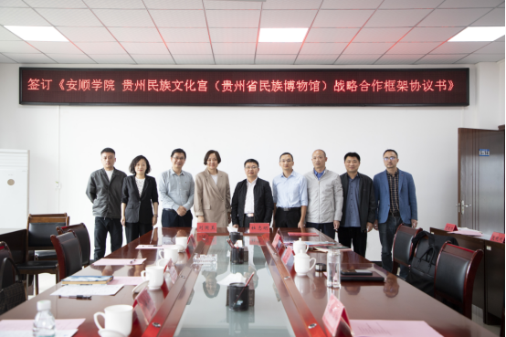 座谈会由杜志明副校长主持。张来副校长致辞,对贵州省民族博物馆刘国玉馆长一行的到来致以诚挚欢迎,简要介绍了安顺学院的办学历程、取得的成绩以及面临的困难,重点阐释了我校目前更名转型发展以及学科专业建设的基本情况,表达了加强双方合作的期望。随后,双方出席人员围绕人才培养、科研合作、学科建设、博物馆建设、铸牢中华民族共同体意识教育等方面进行了热烈交流。在前期协商一致的基础上,双方正式签署了《安顺学院 贵州民族文化宫(贵州省民族博物馆)战略合作框架协议书》。最后,在杜志明副校长的陪同下,刘国玉馆长一行参观了我校地质博物馆。