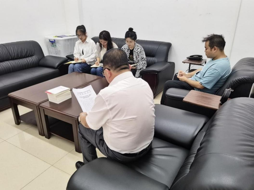 图为:对外处组织学习习近平总书记教师节重要指示精神的情景。